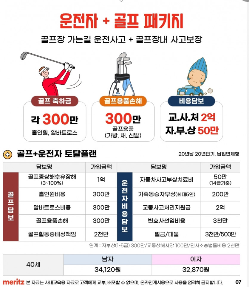 메리츠화재 운전자+골프보험 안내장 > 보험상담 관련